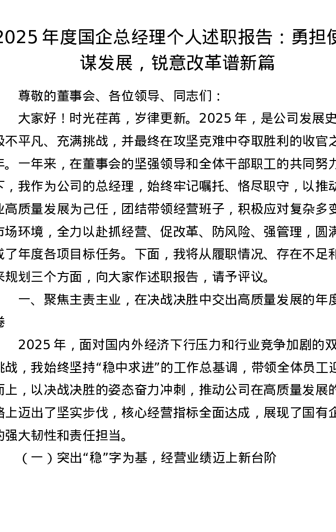 2025年度国企总经理个人述职报告:勇担使命谋发展,锐意改革谱新篇