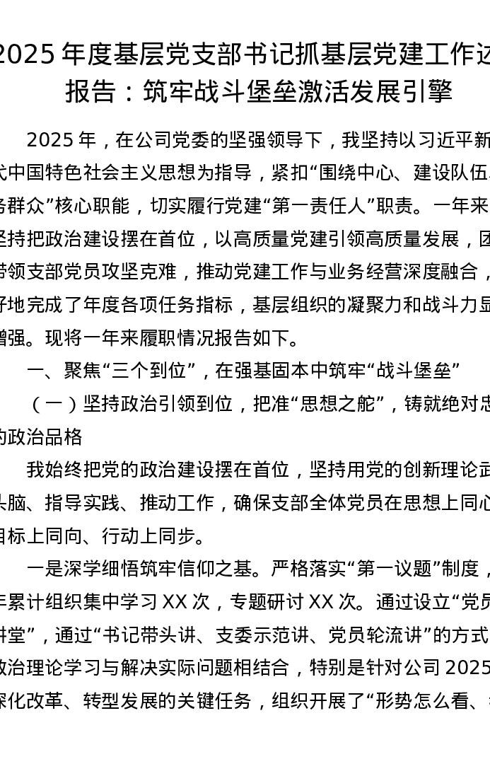 2025年度基层党支部书记抓基层党建工作述职报告:筑牢战斗堡垒 激活发展引擎