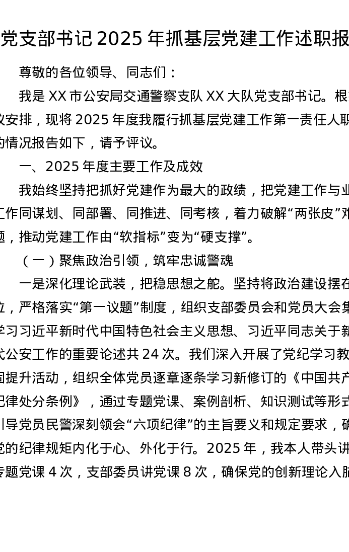 大队党支部书记2025年抓基层党建工作述职报告