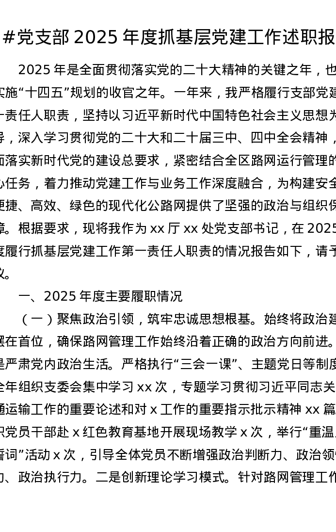 党支部2025年度抓基层党建工作述职报告