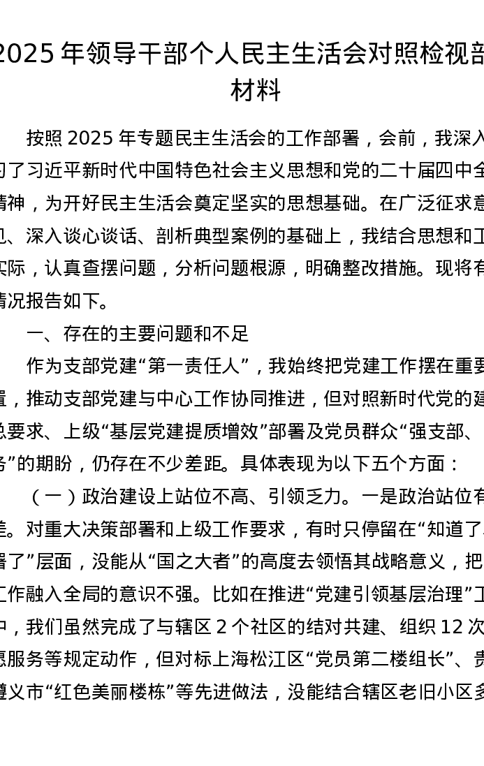 2025年领导干部个人xxxxx对照检视剖析材料