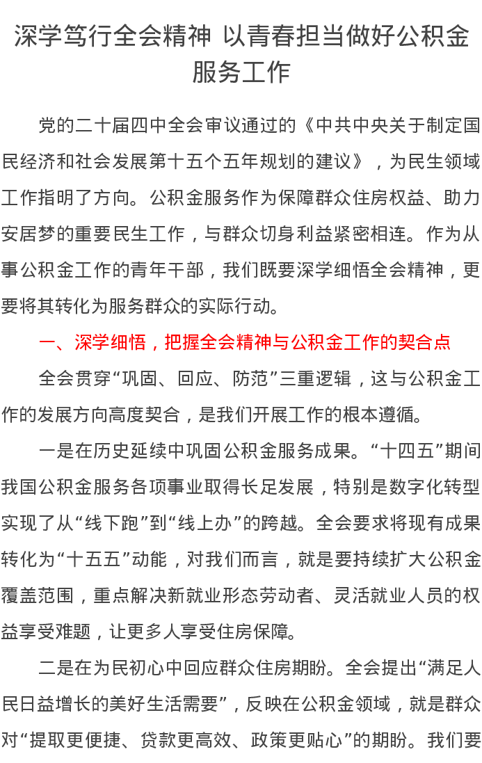 公积金中心年轻干部学习贯彻党的二十届四中全会精神心得体会汇编4篇