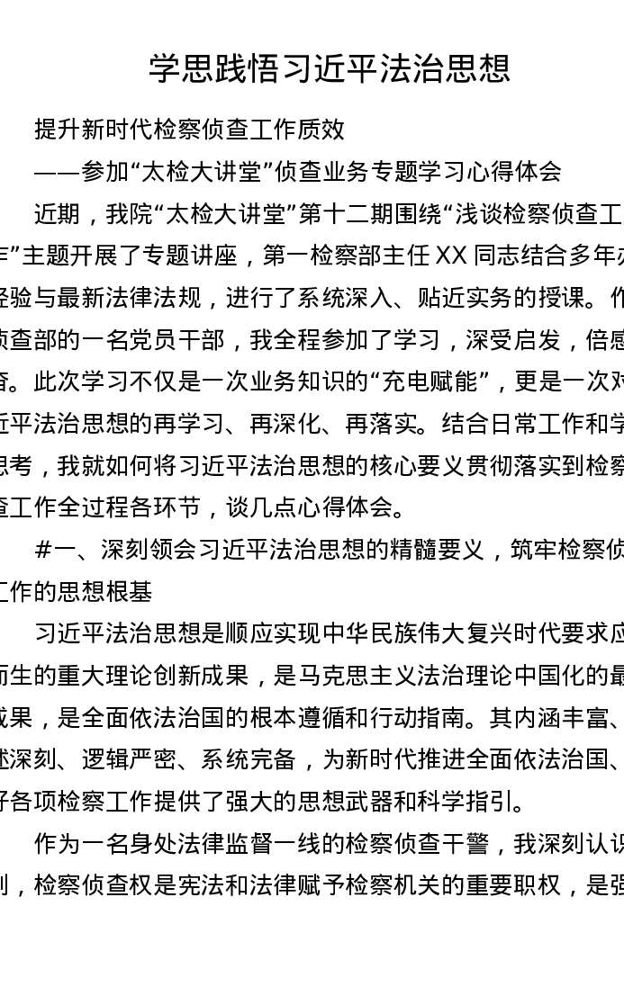 检察院侦查部党员干部学习习近平法治思想的心得体会(4704字)