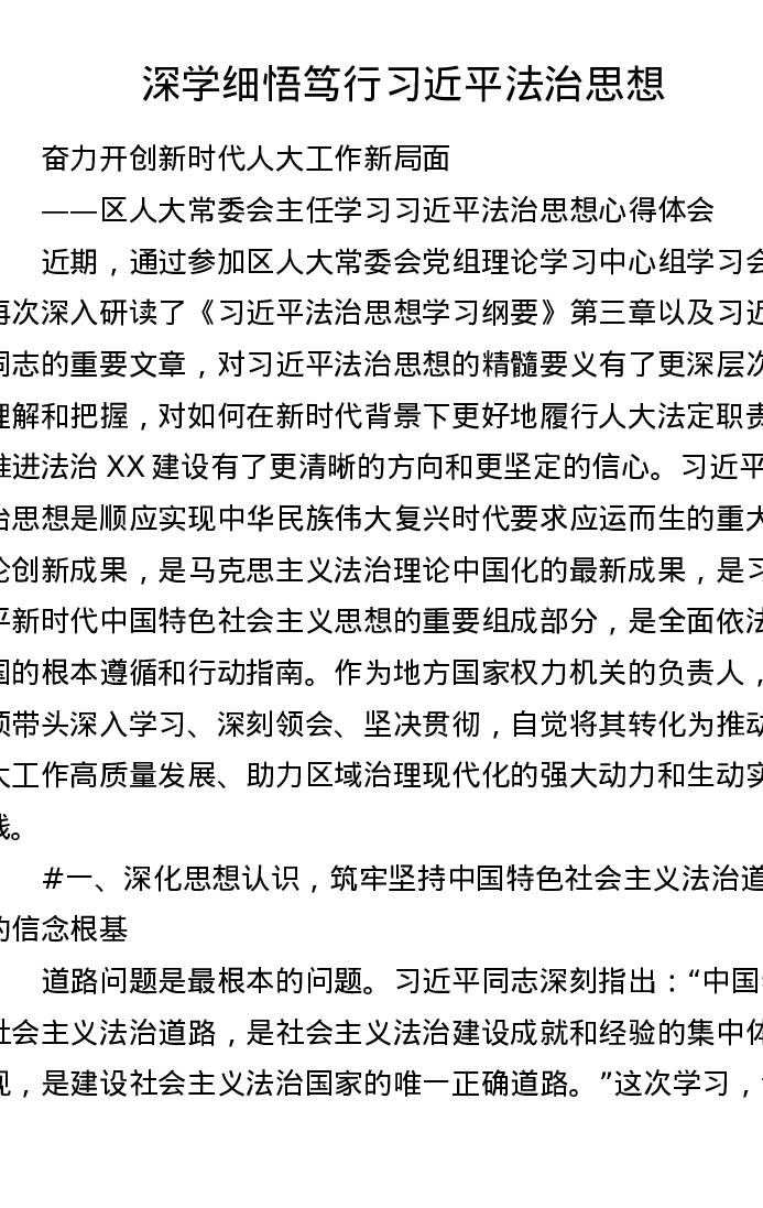 区人大常委会主任学习习近平法治思想心得体会(4656字)