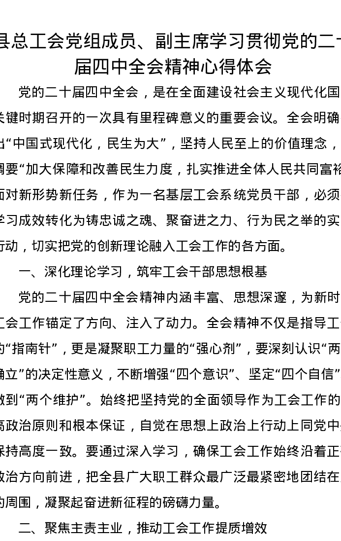 县总工会党组成员、副主席学习贯彻党的二十届四中全会精神心得体会
