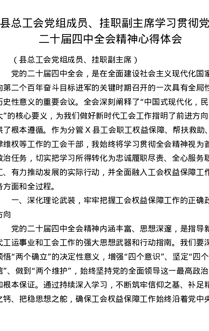 县总工会党组成员、挂职副主席学习贯彻党的二十届四中全会精神心得体会