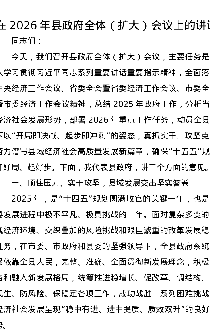 在2026年县政府全体(扩大)会议上的讲话