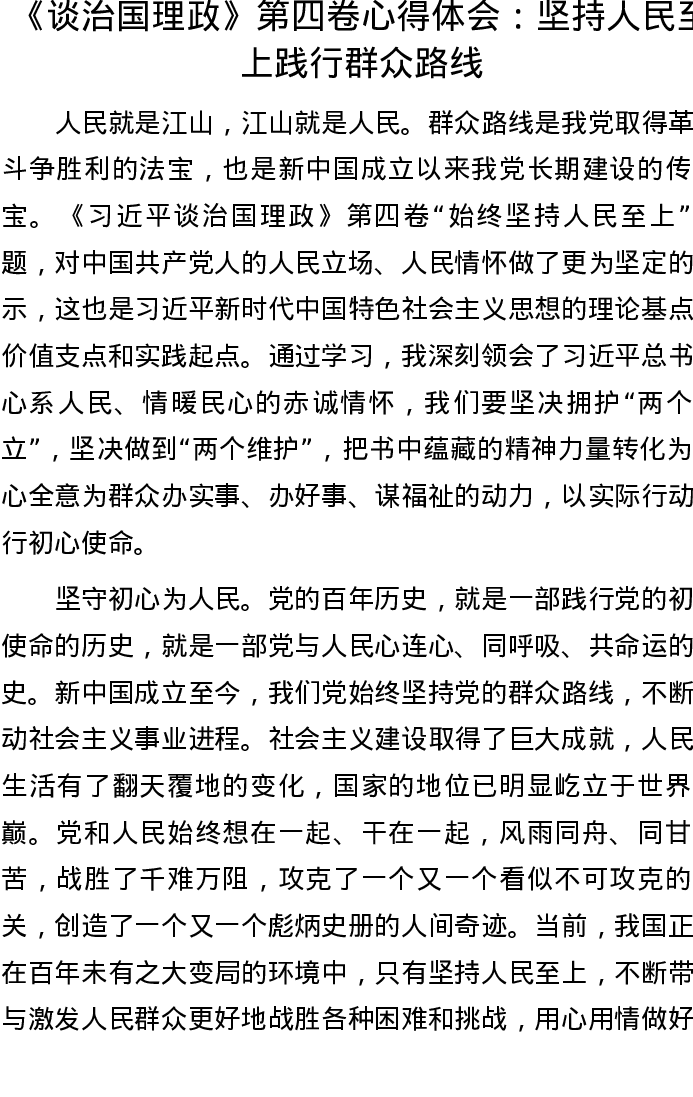 20220828《谈治国理政》第四卷心得体会:坚持人民至上 践行群众路线 1546字