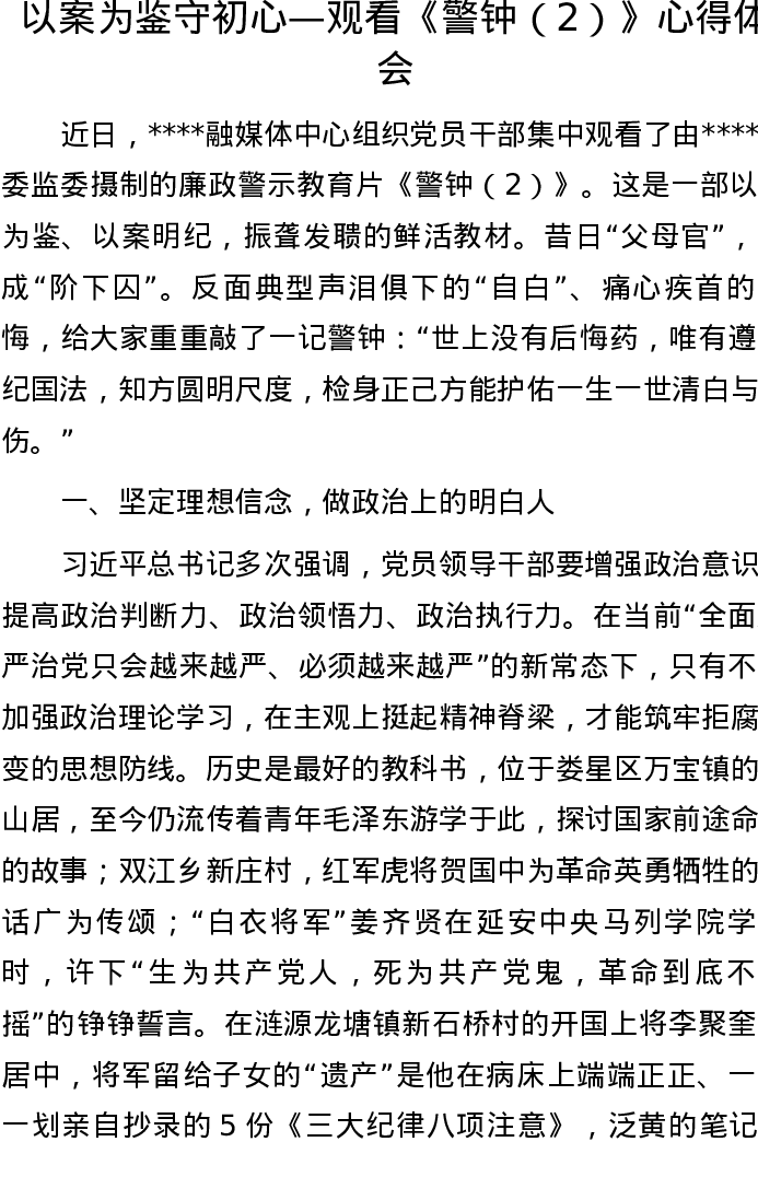 20220907以案为鉴守初心—观看《警钟(2)》心得体会