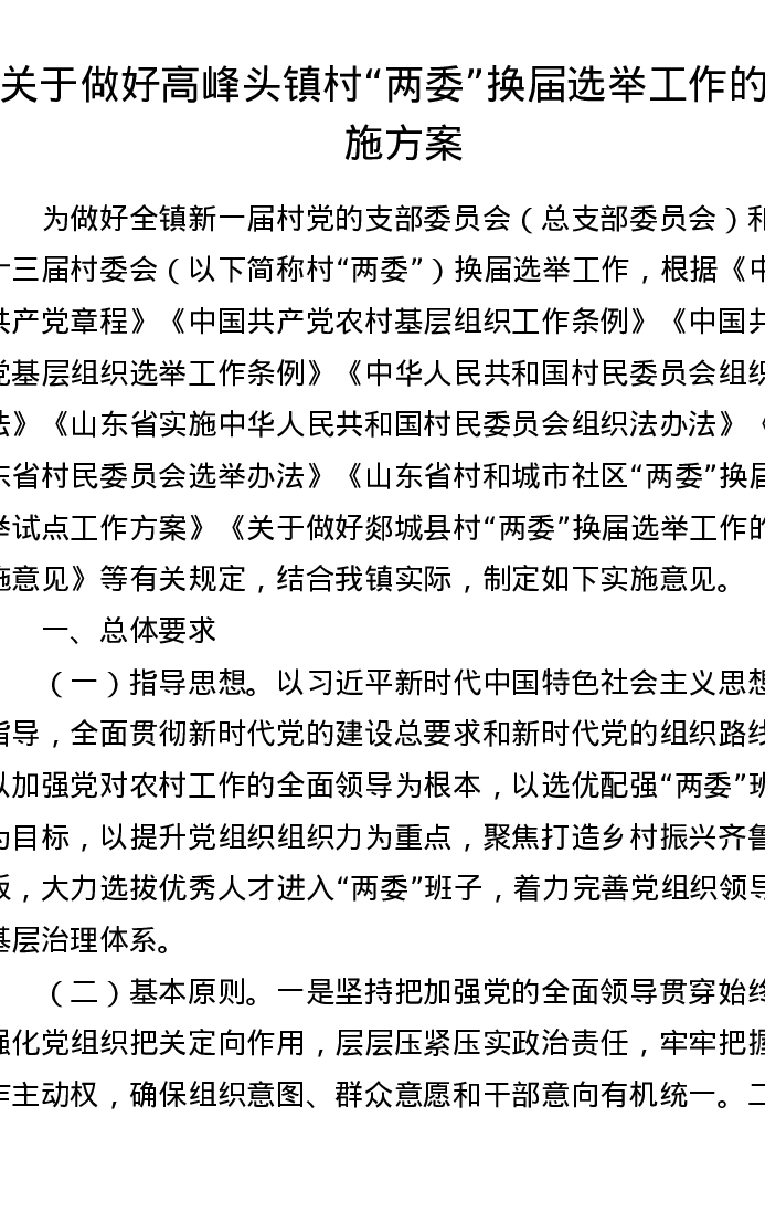 关于做好高峰头镇村两委换届选举工作的实施方案