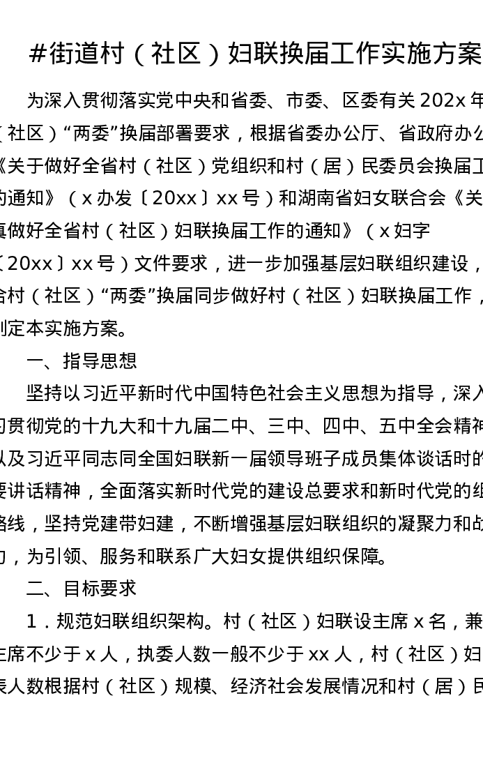 街道村(社区)妇联换届工作实施方案