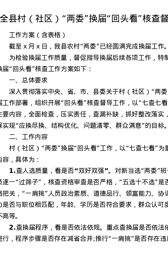 全县村(社区)两委换届回头看核查督导工作方案(含表格)