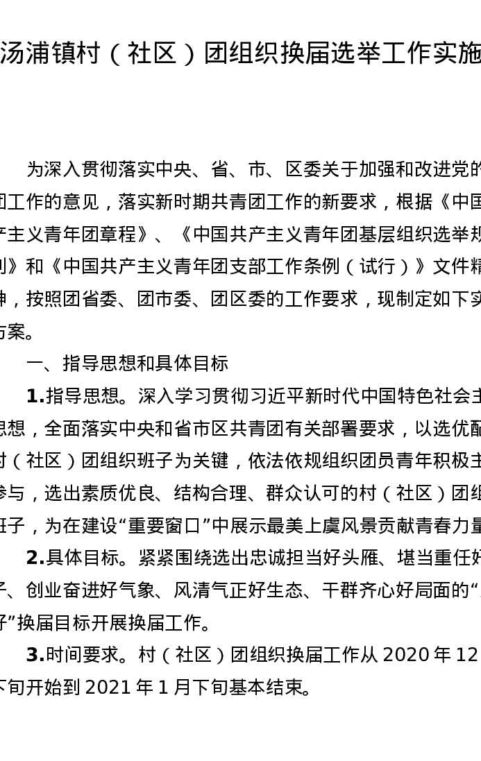 汤浦镇村(社区)团组织换届选举工作实施方案_