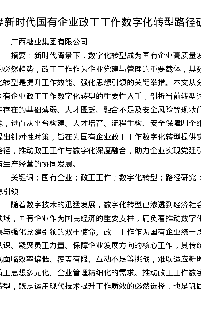 调研报告:新时代国有企业政工工作数字化转型路径研究