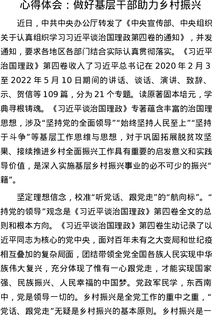 20220908四卷心得体会:做好基层干部 助力乡村振兴