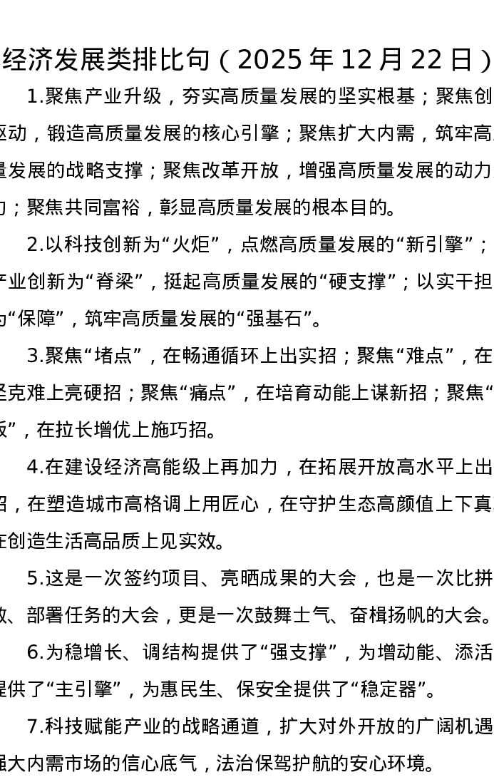 经济发展类排比句(2025年12月22日)