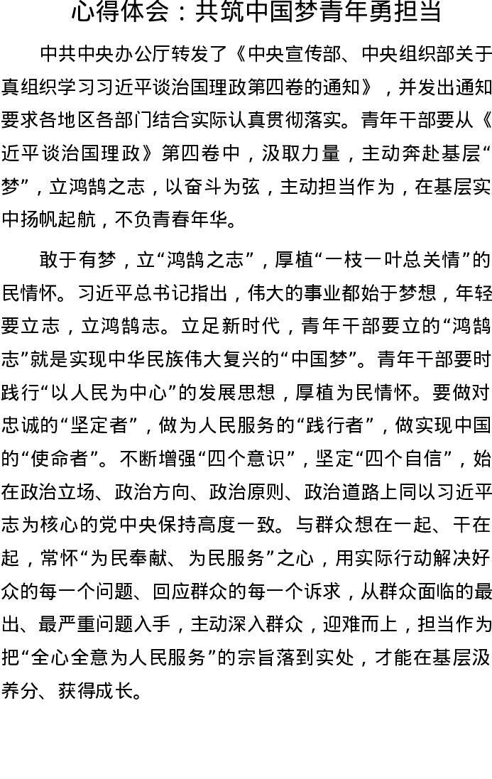 20220908四卷心得体会:共筑中国梦 青年勇担当