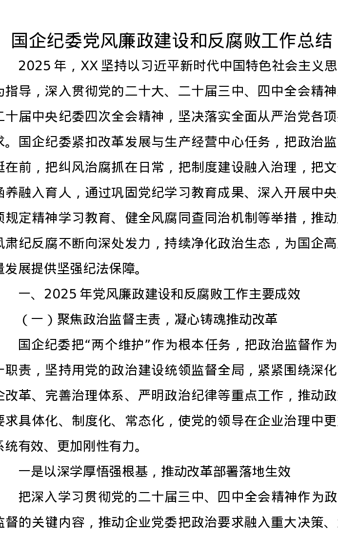 2025年国企公司纪委党风廉政建设和反腐败工作总结