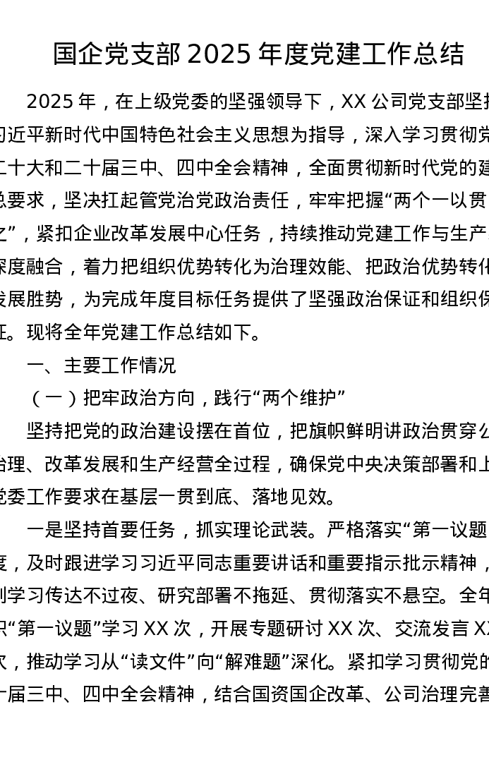 国企党支部2025年度党建工作总结