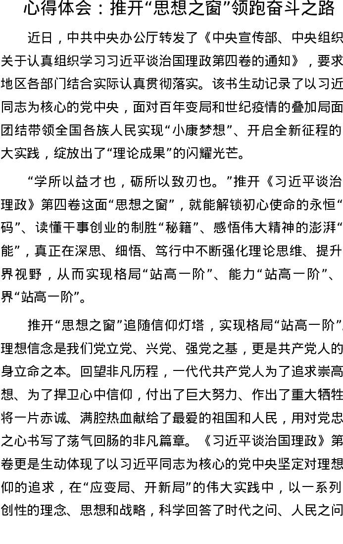 20220908四卷心得体会:推开“思想之窗” 领跑奋斗之路