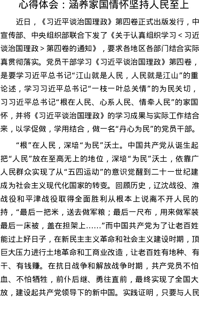 20220908四卷心得体会:涵养家国情怀 坚持人民至上