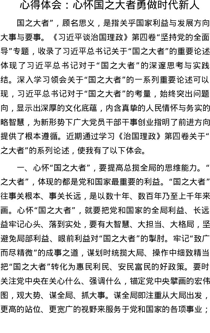 20220909四卷心得体会:心怀国之大者 勇做时代新人