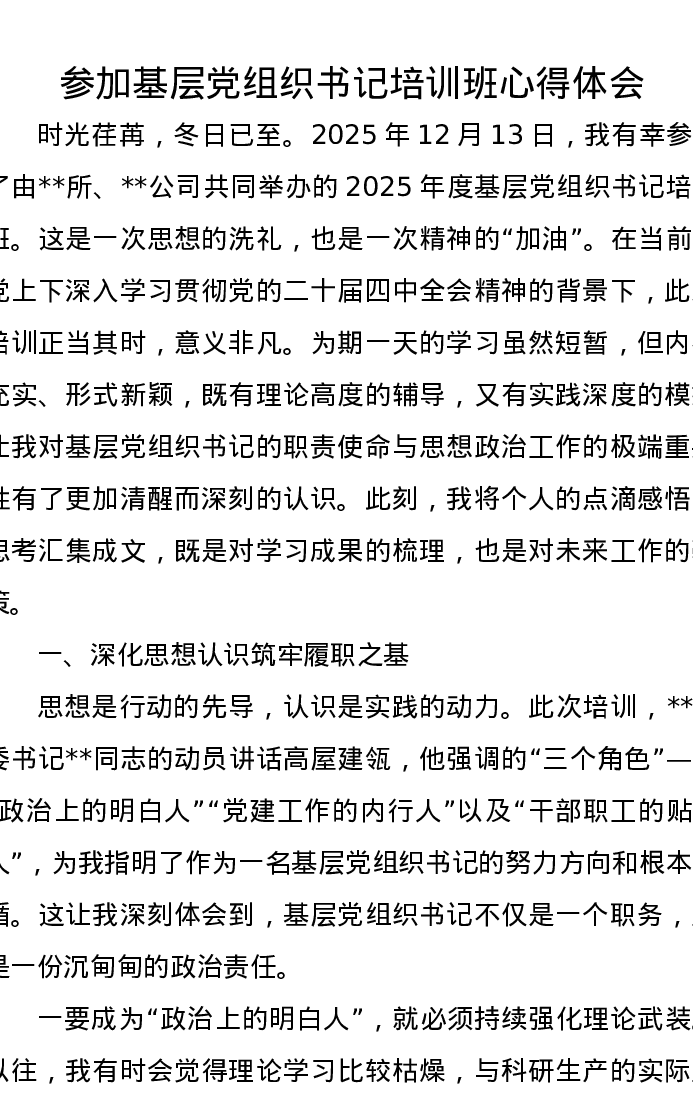 参加基层党组织书记培训班心得体会