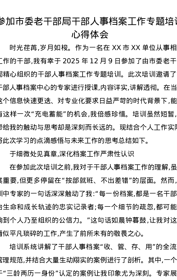 参加市委老干部局干部人事档案工作专题培训心得体会