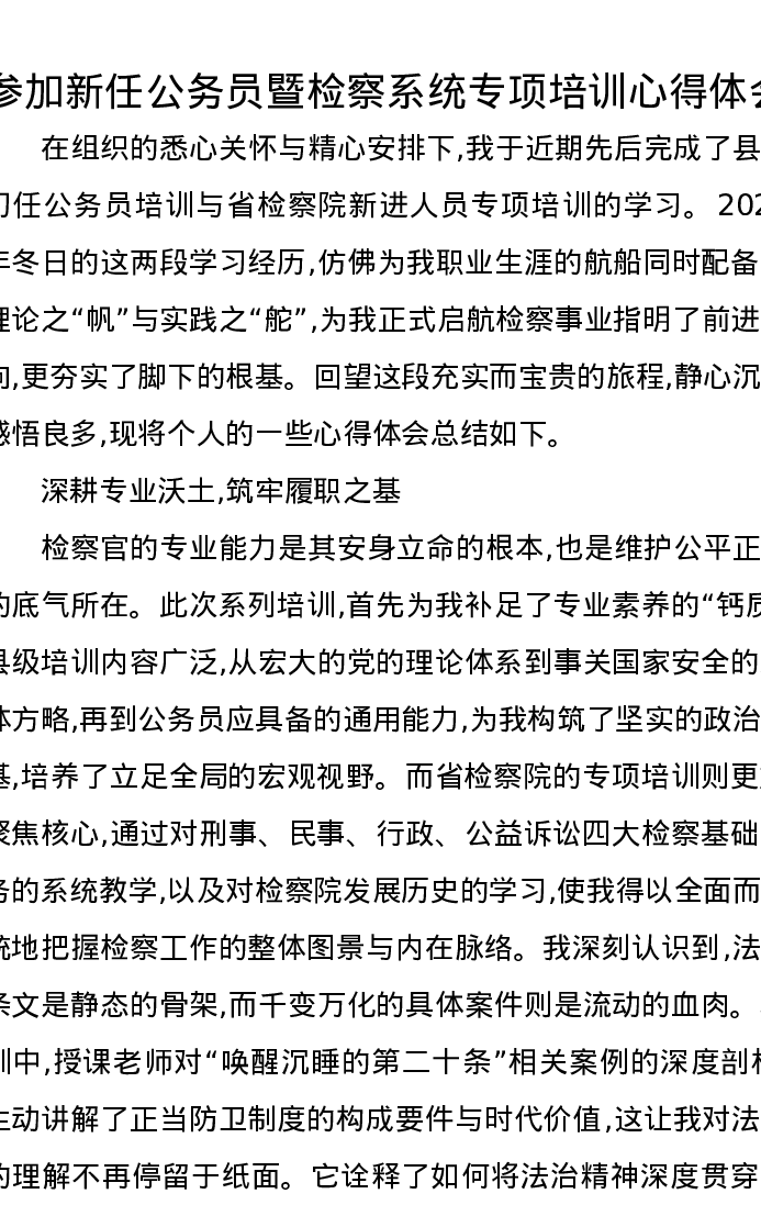 参加新任公务员暨检察系统专项培训心得体会