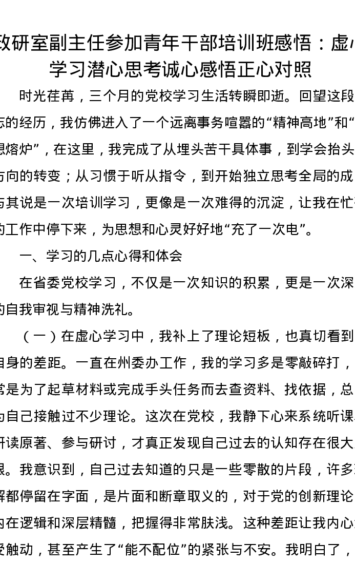 政研室副主任参加青年干部培训班感悟:虚心学习潜心思考诚心感悟正心对照