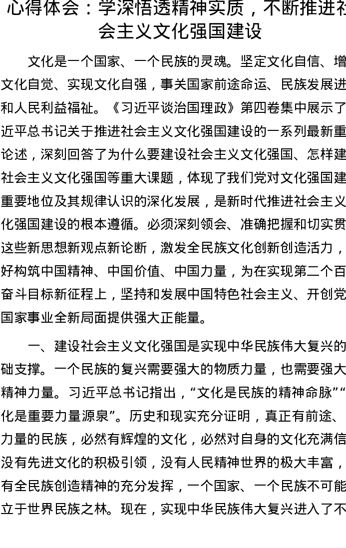 20220912四卷心得体会:学深悟透精神实质,不断推进社会主义文化强国建设