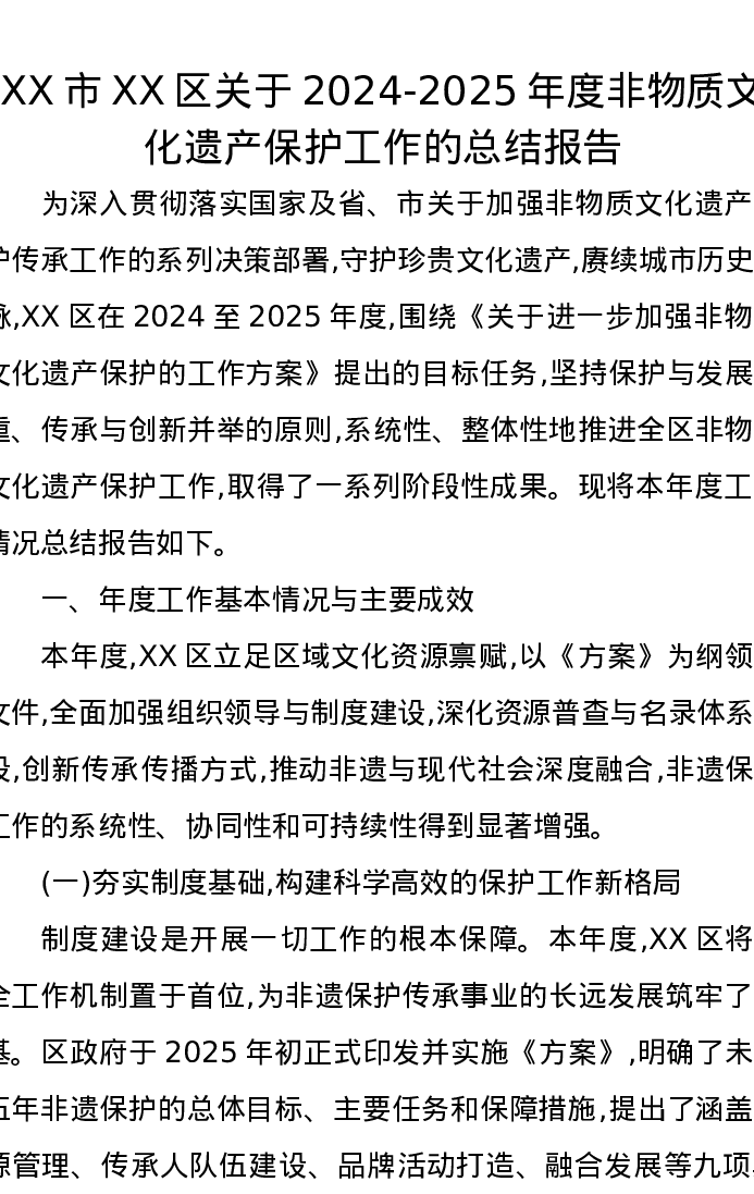 XX市XX区关于2024-2025年度非物质文化遗产保护工作的总结报告2