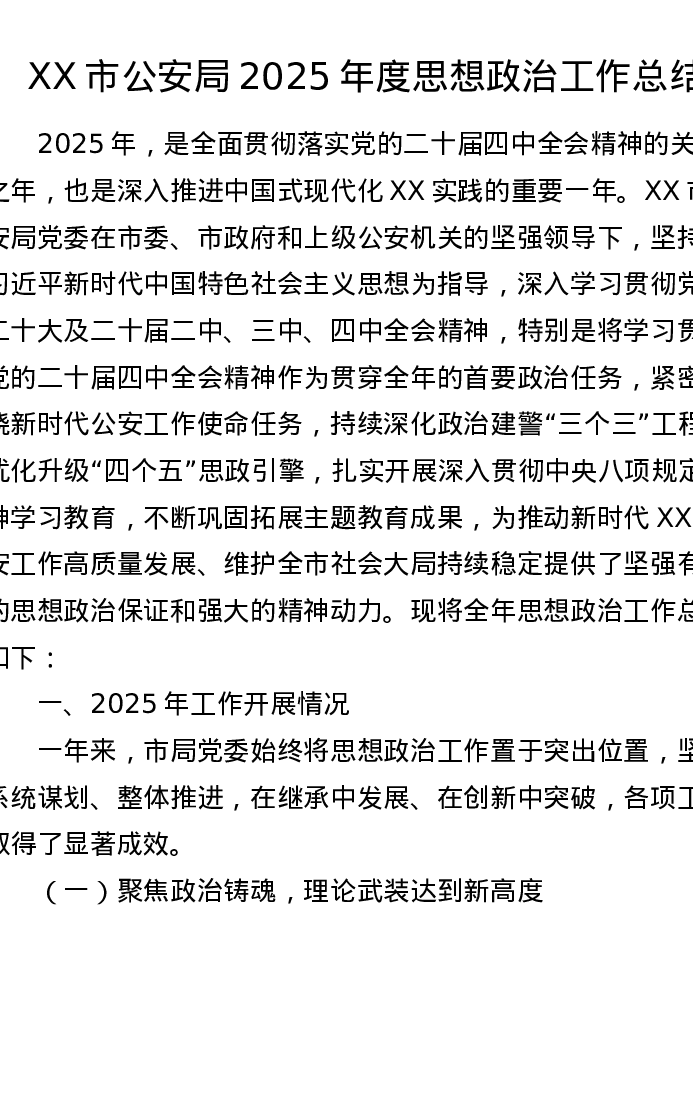 XX市公安局2025年度思想政治工作总结