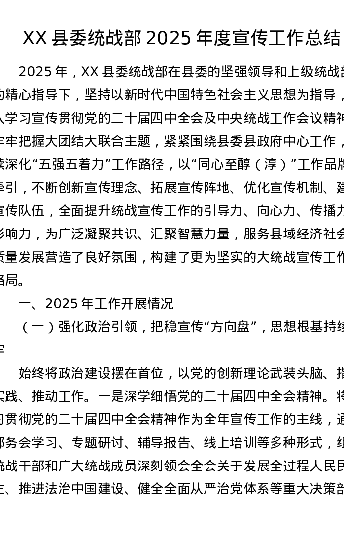 XX县委统战部2025年度宣传工作总结