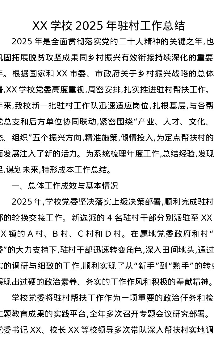 XX学校2025年驻村工作总结