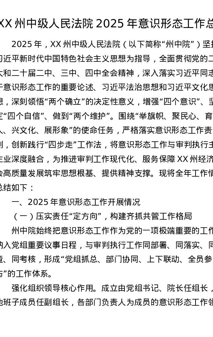 XX州中级人民法院2025年意识形态工作总结