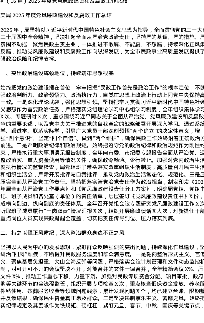 汇编:2025年度党风廉政建设和反腐败工作总结16篇