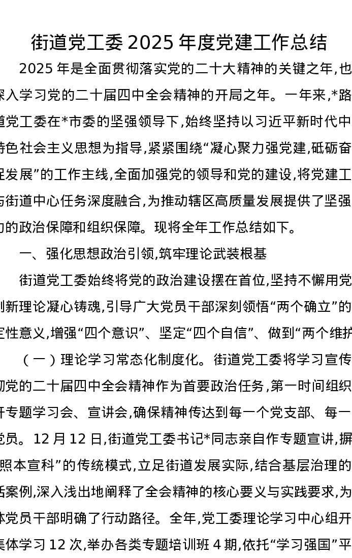 街道党工委2025年度党建工作总结