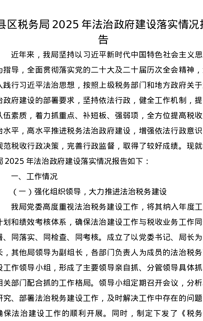 县区税务局2025年法治政府建设落实情况报告
