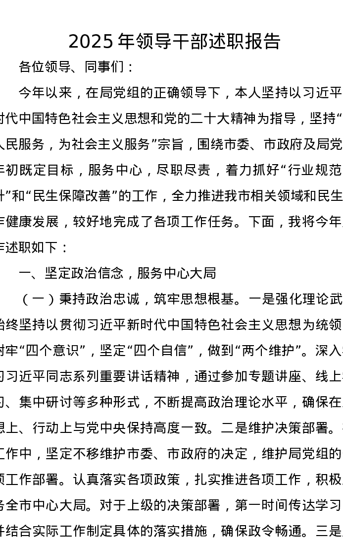 2025年领导干部述职报告