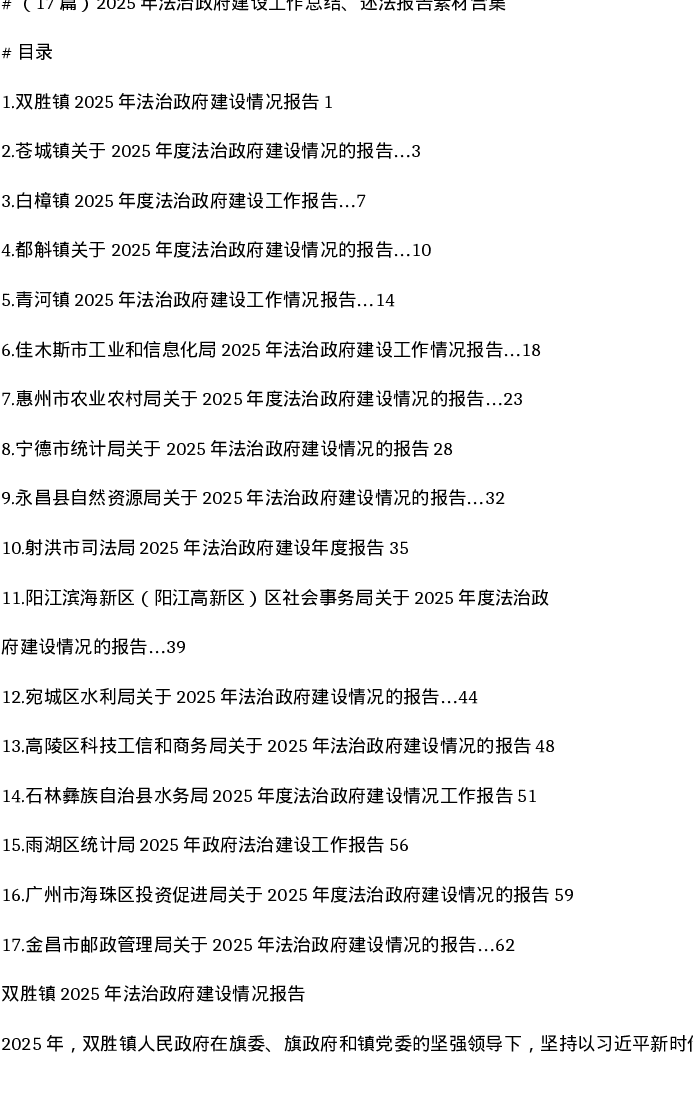 汇编:2025年法治政府建设工作总结、述法报告素材合集17篇