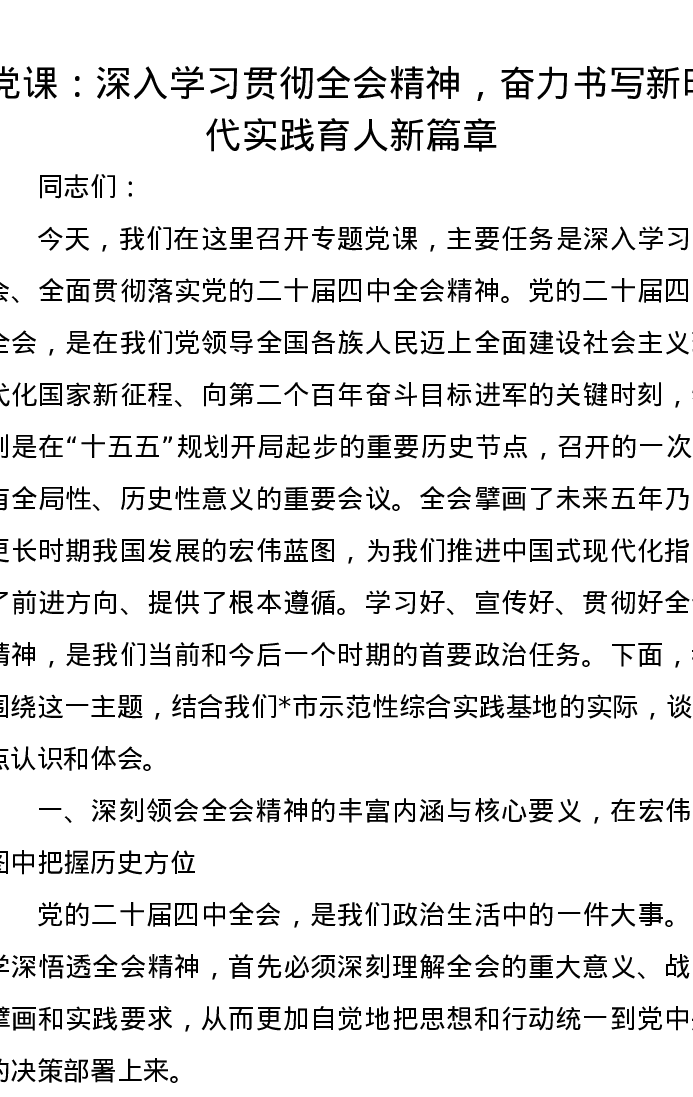 党课:深入学习贯彻全会精神,奋力书写新时代实践育人新篇章