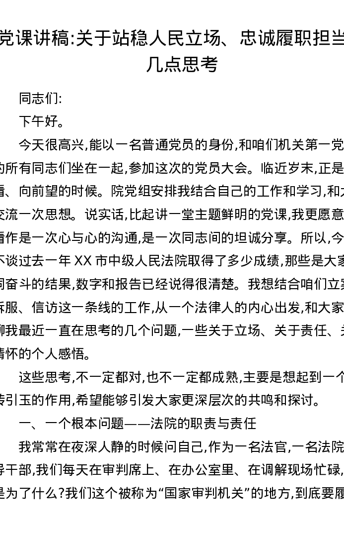 党课讲稿:关于站稳人民立场、忠诚履职担当的几点思考
