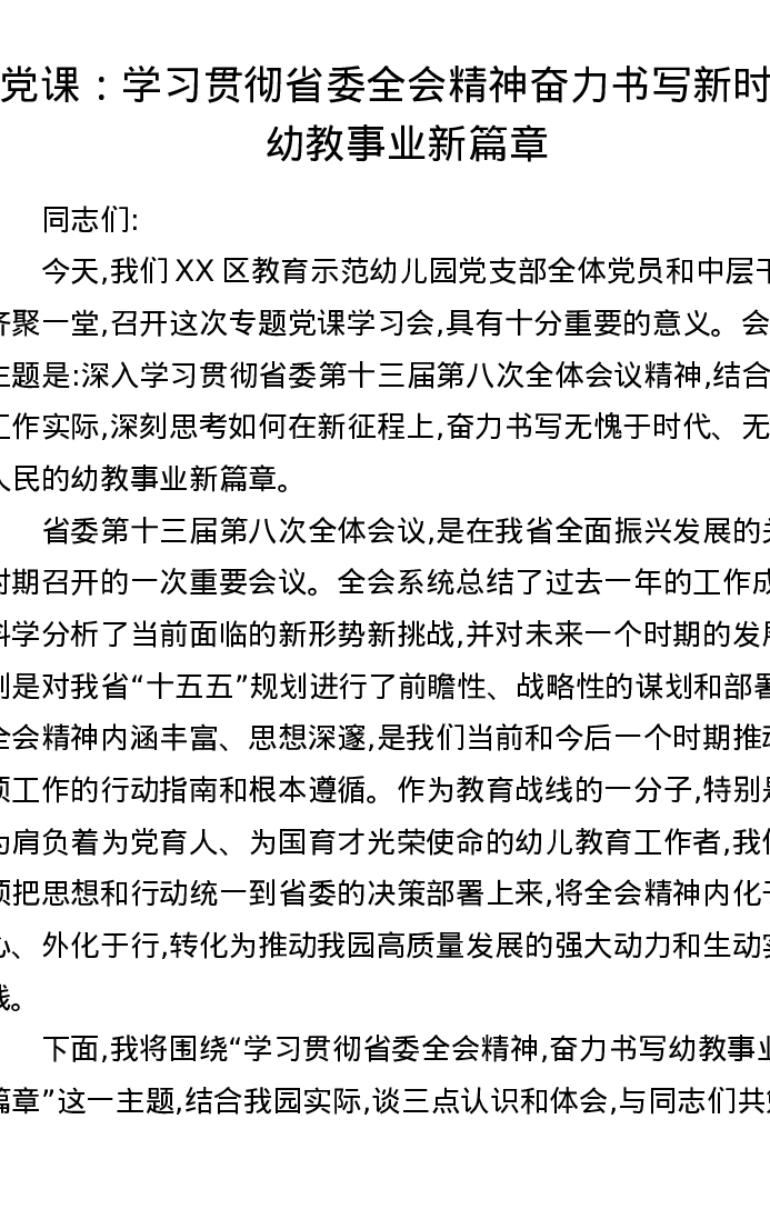 党课讲稿:学习贯彻省委全会精神奋力书写新时代幼教事业新篇章