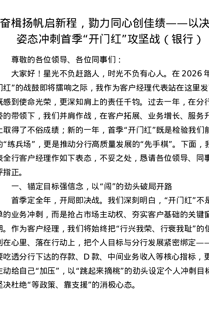 讲话:奋楫扬帆启新程,勠力同心创佳绩——以决胜姿态冲刺首季开门红攻坚战(银行)