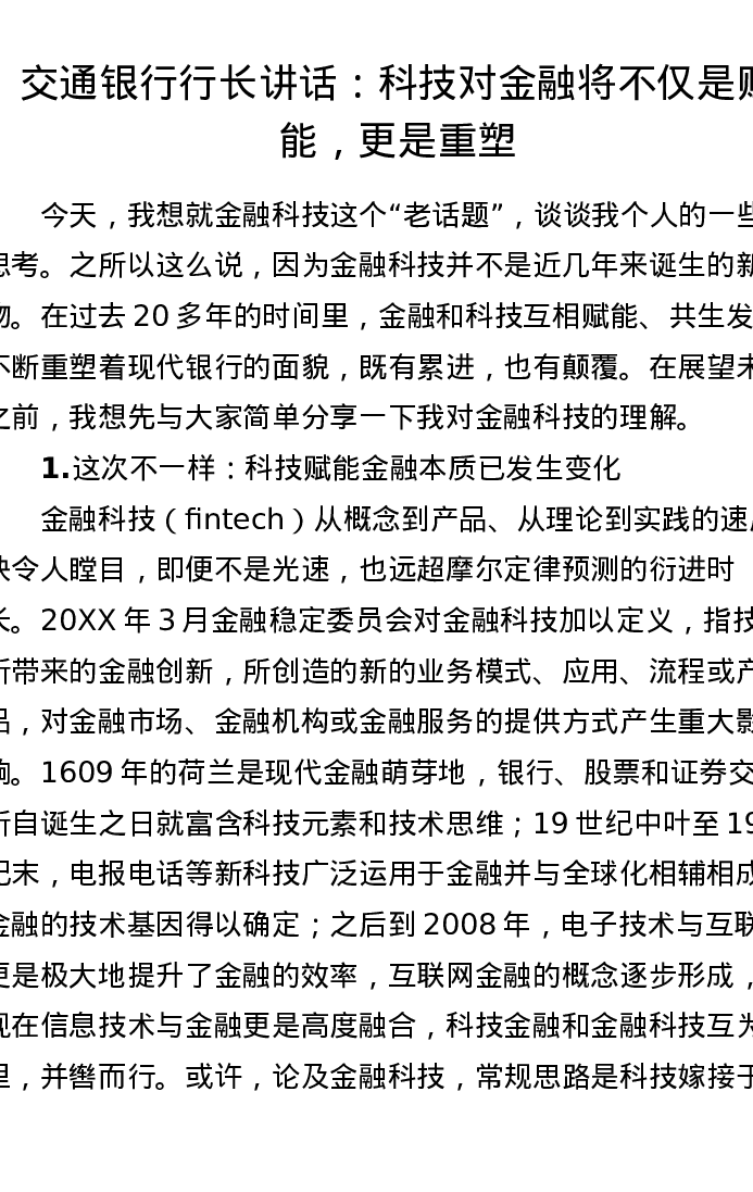 交通银行行长讲话:科技对金融将不仅是赋能,更是重塑