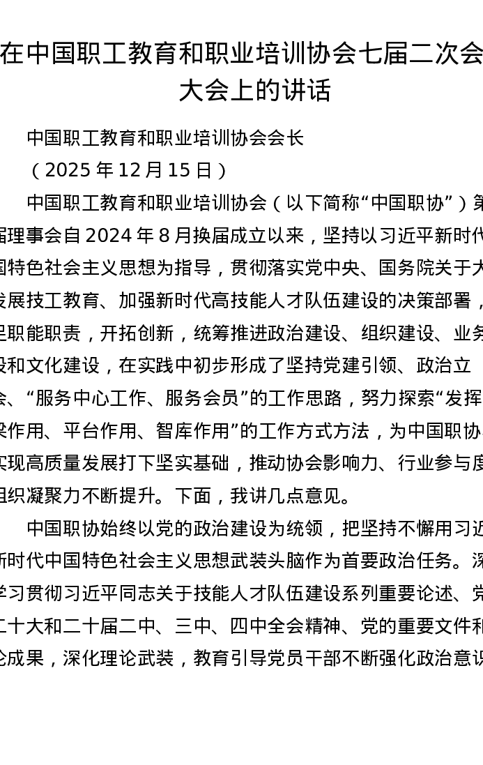 在中国职工教育和职业培训协会七届二次会员大会上的讲话