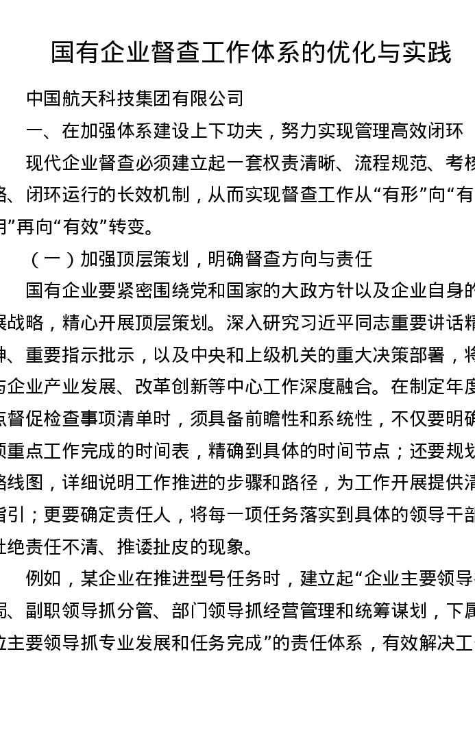 国有企业督查工作体系的优化与实践