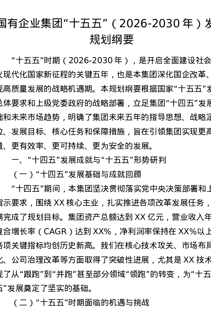 国有企业集团十五五(2026-2030年)发展规划纲要