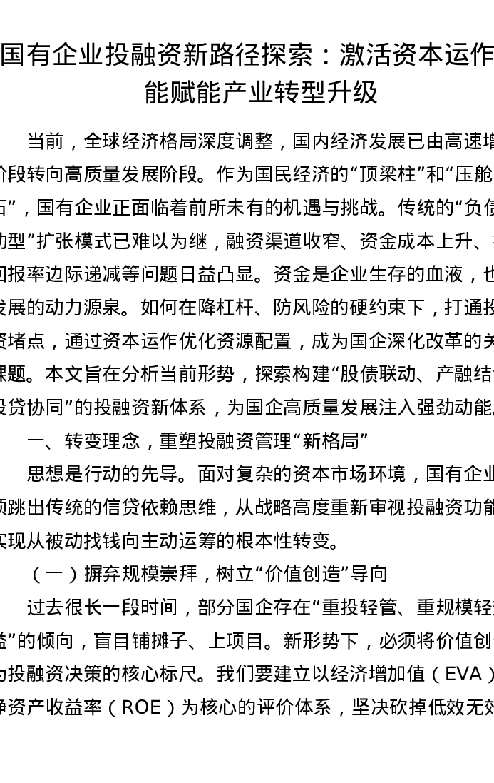国有企业投融资新路径探索:激活资本运作效能 赋能产业转型升级
